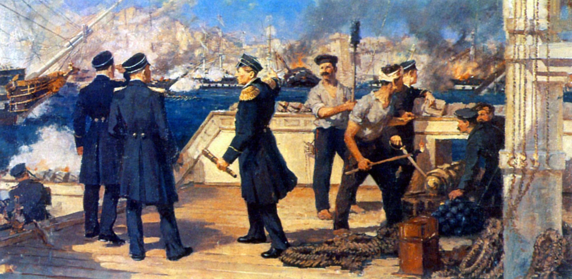18 ноября 1853 г. в Синопской бухте на южном побережье Черного моря произошло последнее крупное сражение в истории парусного флота – и героем его стал адмирал Павел Нахимов. Ему удалось сначала запереть турецкую эскадру в бухте, после чего русские корабли обрушили на врага истребительный огонь. Действовали при этом быстро и умело. В составе русской эскадры было 6 линкоров и 2 фрегата, а в составе турецкой — 7 фрегатов, 3 корвета, 2 пароходофрегата, 2 брига, 2 транспорта. Но русская артиллерия превосходила противников и числом, и умением. За четыре часа османская эскадра была уничтожена.