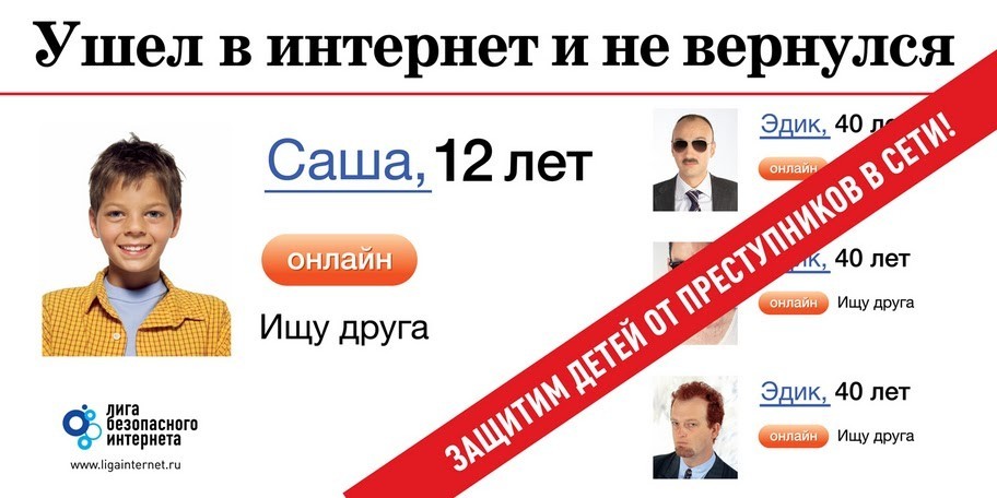 Лига безопасного интернета привлекает внимание родителей к тому, с какими опасностями может столкнуться ребенок в сети интернет. Масштабная информационная кампания начнется в ноябре с размещения в Москве рекламных поверхностей с изображением ребенка и девизом «Ушел в интернет и не вернулся». В декабре будут покрыты города-миллионники. Основной спонсор размещения ОАО «Ростелеком» выделил бюджет в 1 млн руб.