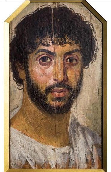 Вот это так называемый фаюмский портрет, погребальный, I век нашей эры. Эти портреты писались при жизни, каждый мог заказать такой портрет, и потом, когда человек умирал, его портрет клали на саркофаг, чтобы душа, которая отлучалась, чтобы пройти определенные испытания, могла вернуться и найти свое тело вот таким образом.