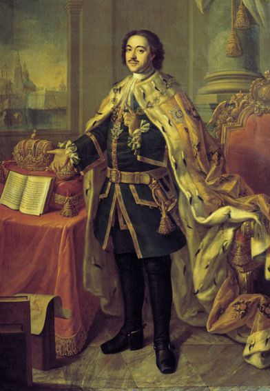 Все демонстрируют себя, все показывают себя вместе с аксессуарами, принадлежностями. Вот это автопортрет, это сам автор. Видите, лицо вполне такое печальное. Я думаю, он думает о своей несчастной доле. Петр I со всеми регалиями: горностаевая мантия, корона, скипетр, держава, — это, конечно, личина.