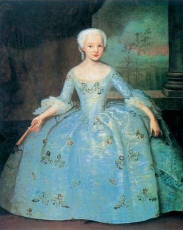 А вот это совершенно прелестная девочка — портрет Сары Фермор, дочери того вельможи, приехавшего из-за границы, потому что Петр приглашал очень много народу оттуда. Вот эта девочка: трогательная такая, чересчур длинные руки (ну, так живописец не очень умел, видимо, это делать, руки вообще очень трудно рисовать), кринолин, и такое милое детское личико венчает все это, и на заднем плане молодые деревца там где-то, которые вполне соответствуют ее облику.