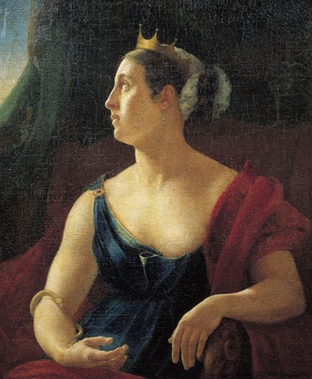 Кроме бронзовой статуэтки музы других аксессуаров нет, однако мы безошибочно, даже не зная черт этого нам хорошо знакомого лица, сказали бы, что здесь, конечно, изображен поэт. Та знаменитая Оленина, в которую Пушкин был влюблен. Неизвестная с косынкой. Это все его итальянские впечатления. Читающие газеты в Неаполе. Это актриса Семенова в роли Клеопатры.
