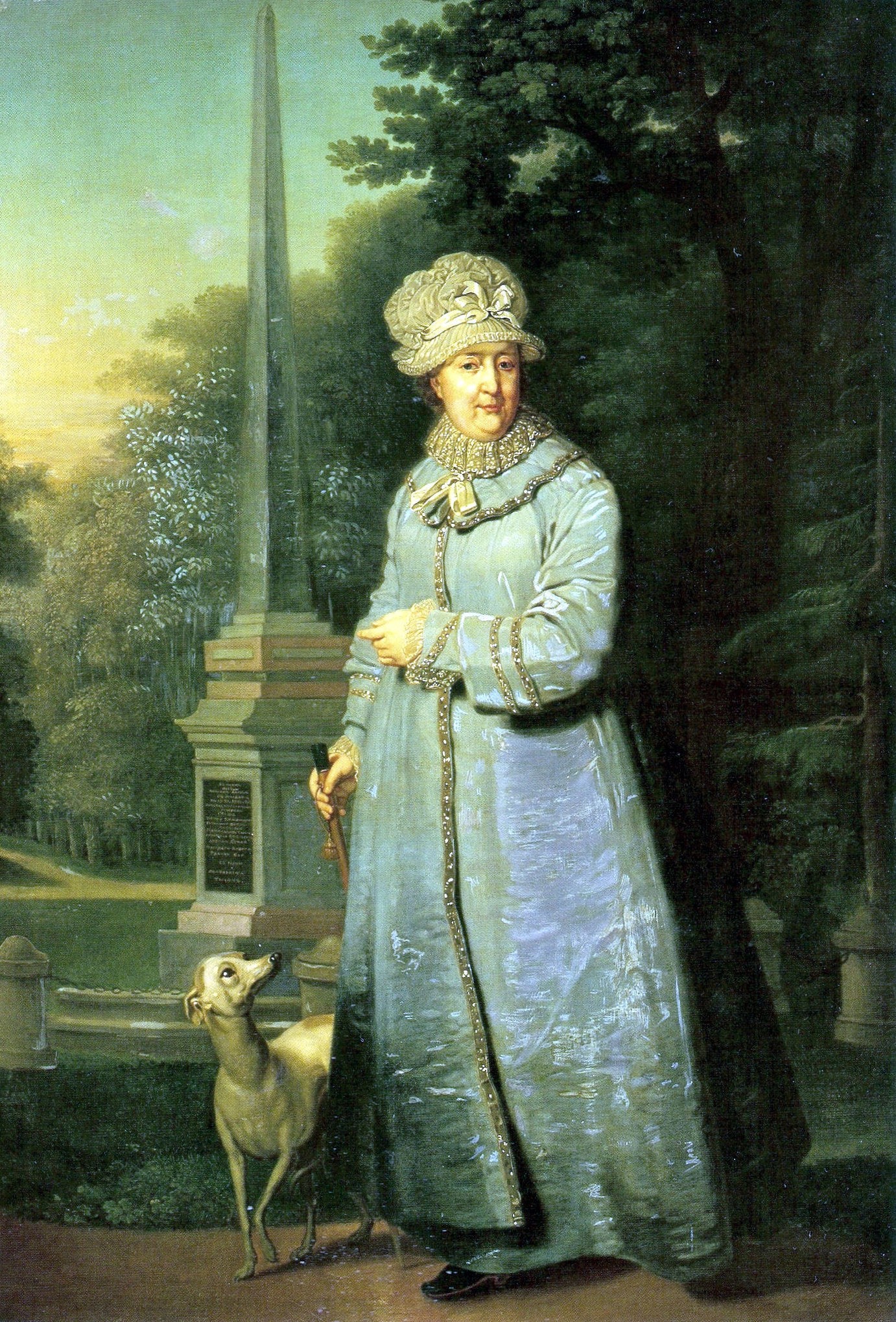 Другой замечательный художник этого же времени — Боровиковский. У него другие женщины, тоже свободные, раскованные, вполне образованные. А вот посмотрите, это, между прочим, Екатерина II. Вспомните ее парадные портреты. А здесь она гуляет утром с собачкой, вполне в обычном светском обличии.