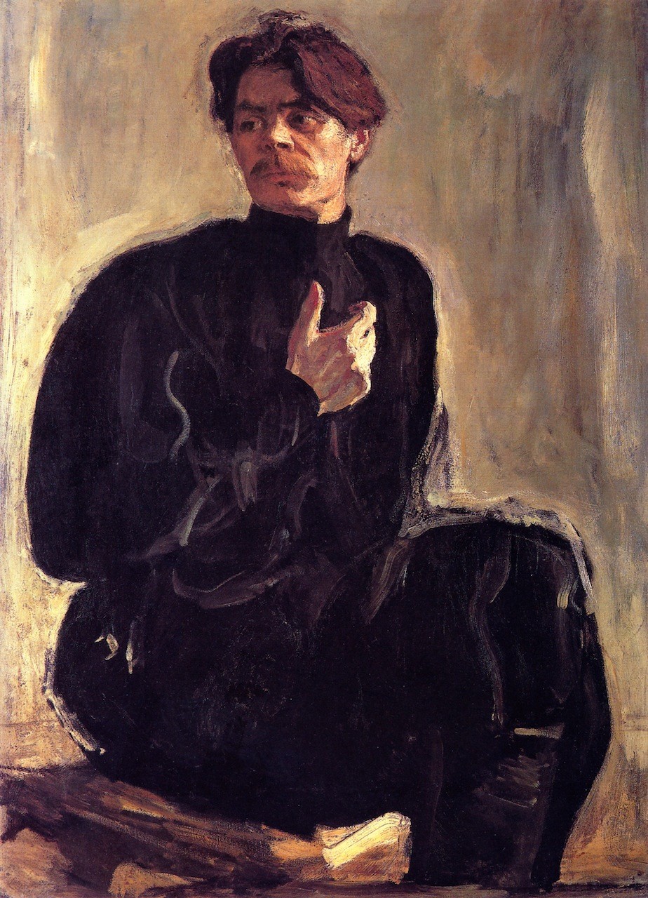 Ермолова. Ермолову он написал гениально, он написал ее как бы с двух точек зрения. Лицо ее написано так, как будто увидено снизу, а торс и платье — как будто увиденные сверху, она огромная, она просто как колонна высится.