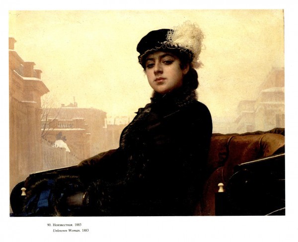 Вот Крамской, художник. Он был основателем Союза передвижников, когда художники взбунтовались, отказались писать картины на всякие мифологические темы, которые им диктовала Академия, и захотели писать только народные сцены. Причем эти народные сцены на самом деле были евангельскими сценами, это были рассказы о малых сих, чего тоже еще никогда не было на русском горизонте. Вот автопортрет. Вы видите лицо разночинца. Вообще на авансцену выходит новое сословие —дети священников, которые получили первоначально образование в семинариях, но, тем не менее, от церкви ушли как можно дальше, и ушли не куда-нибудь, а в проекты всевозможных революционных действий. Это им, в общем, многим обязаны революционеры. Это вот портрет незнакомки.