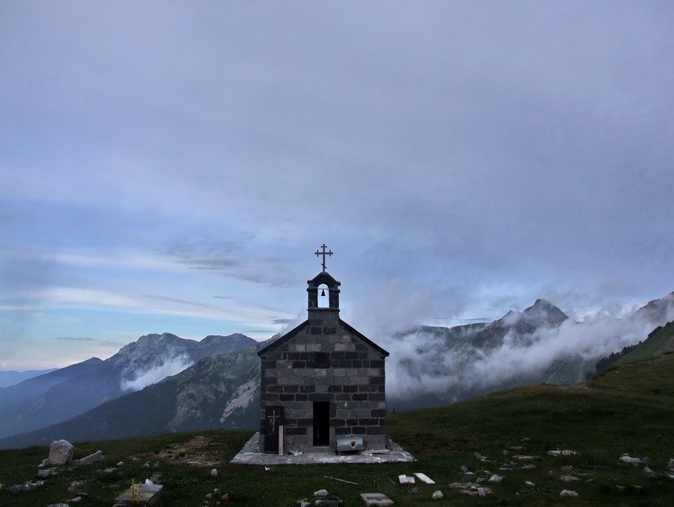 Небо высокое. Тучки на нем лермонтовские. И гордые скалы тоже лермонтовские. На груди у этих каменных уступов ночуют золотые тучки, улетая поутру, и оставляя влажный след на груди очередного каменного великана.