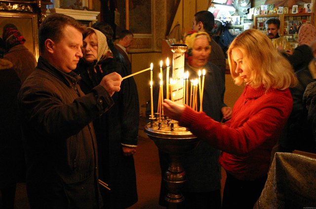 Среди православных доля тех, кто посещает храм, составляет 76%. При этом 33% опрошенных сообщили, что ходят в церковь, чтобы поставить свечку и помолиться, 29% бывали на крестинах, венчании или отпевании, 11% участвовали в богослужении. 29% граждан посещают храм, «когда просто возникает желание зайти, побыть в церкви».