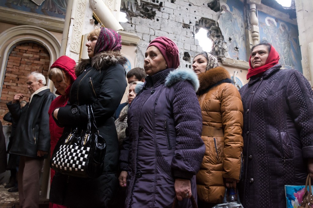 Множество паломников и прихожан смогли добраться в обитель Несмотря на холодную погоду и порывистый ветер, храм, в котором разрушены крыша и стены, был переполнен молящимися.Пресвятой Богородицы в отдаленном уголке города благодаря помощи неравнодушных людей. Игумения обители Михаила (Шевченко) и волонтеры из разных приходов Донецка приложили немало усилий для того, чтобы отпраздновать в монастыре престольный праздник. Они начали устранять последствия боевых действий — вывезли много мусора, подготовили территорию обители и сам храм.