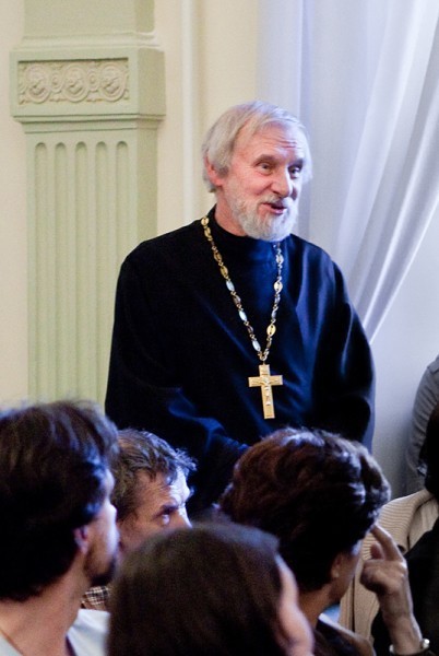Затем ведущий не только задавал вопросы, но и старался направлять и модерировать беседу, давал слово присутствовавшим в зале – среди них были искусствовед, кандидат культурологии, заведующая кафедрой христианского искусства Библейско-богословского института святого апостола Андрея, преподаватель Коломенской духовной семинарии, Российского православного института святого Иоанна Богослова Ирина Языкова, философ и богослов, научный консультант Синодальной Богословской комиссии Александр Кырлежев, обозреватель «Независимой газеты» Станислав Минин, преподаватель Российского государственного гуманитарного университета, религиовед Алексей Юдин, редактор журнала Московской патриархии Сергей Чапнин, редактор журнала «Медведь» Борис Минаев, редактор программы «Тем временем» Ксения Лученко, настоятель московского храма св.бесср. Космы и Дамиана в Шубине священник Александр Борисов и другие.