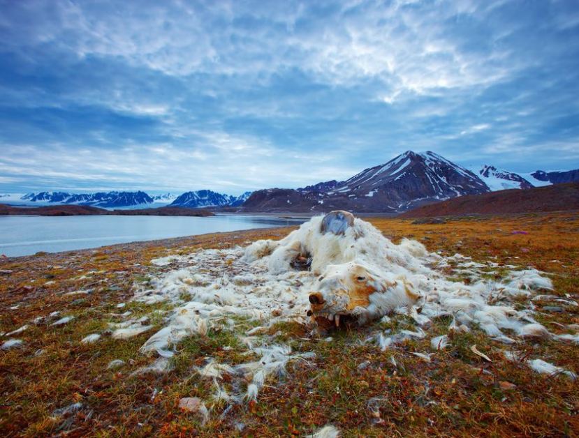 Останки полярного медведя были обнаружены на одном из островов норвежского Шпицбергена. К сожалению, мы не знаем, от чего именно умер медведь — от голода или старости. Вероятнее всего, так как состояние зубов хорошее, это произошло именно от голода. Останки белых медведей здесь находят все чаще — сказывается глобальное потепление и сокращение ледового покрытия.