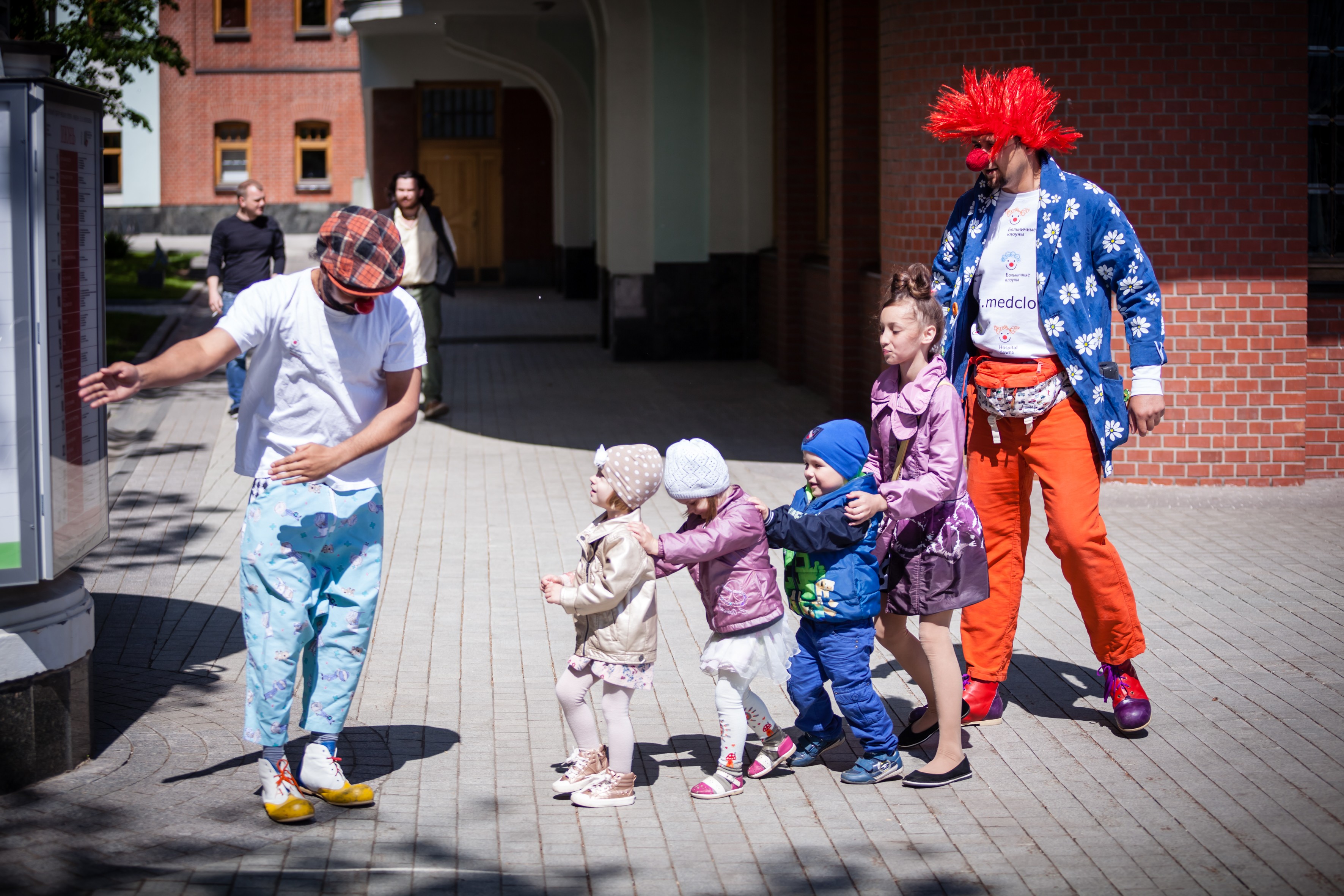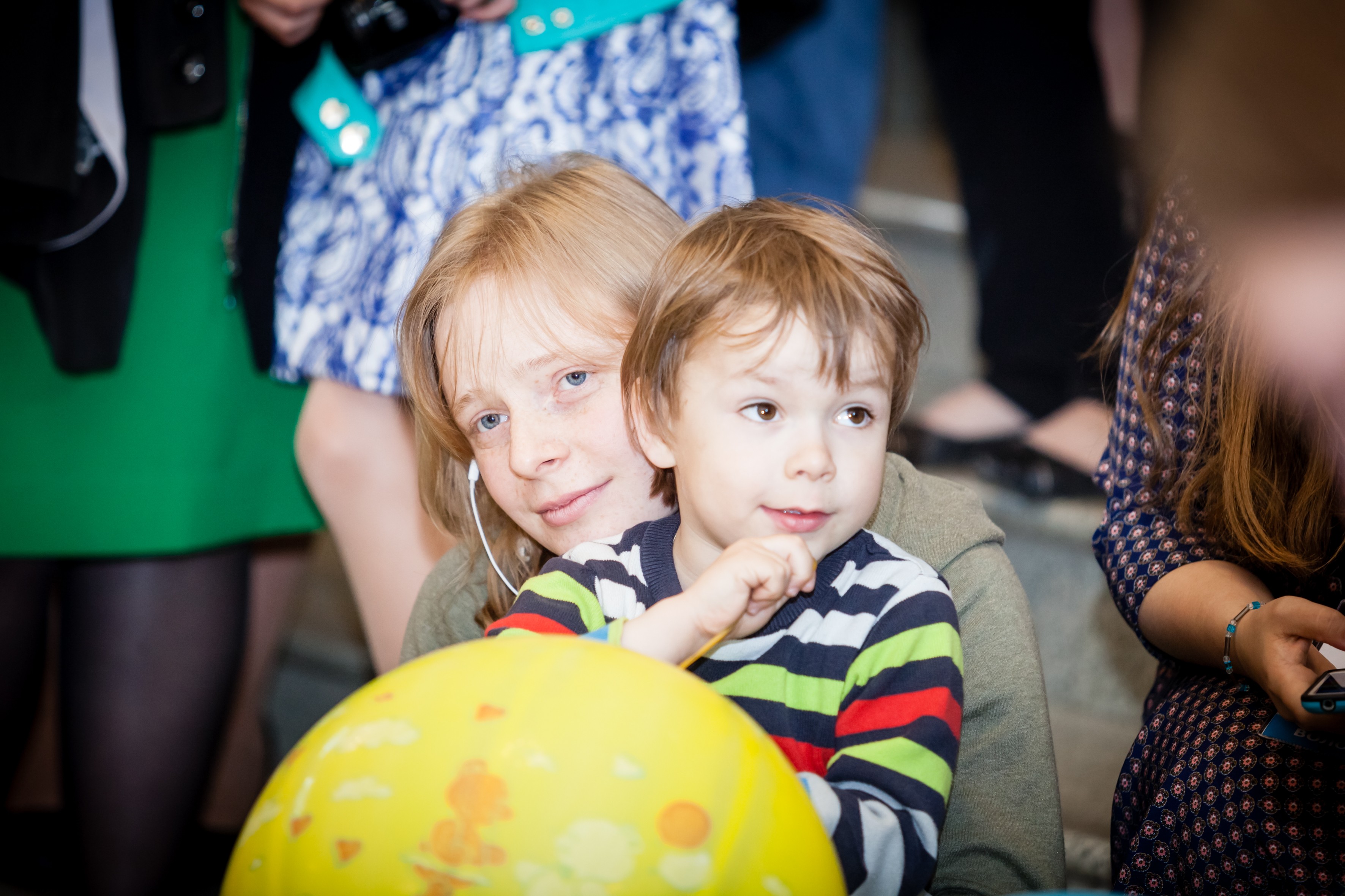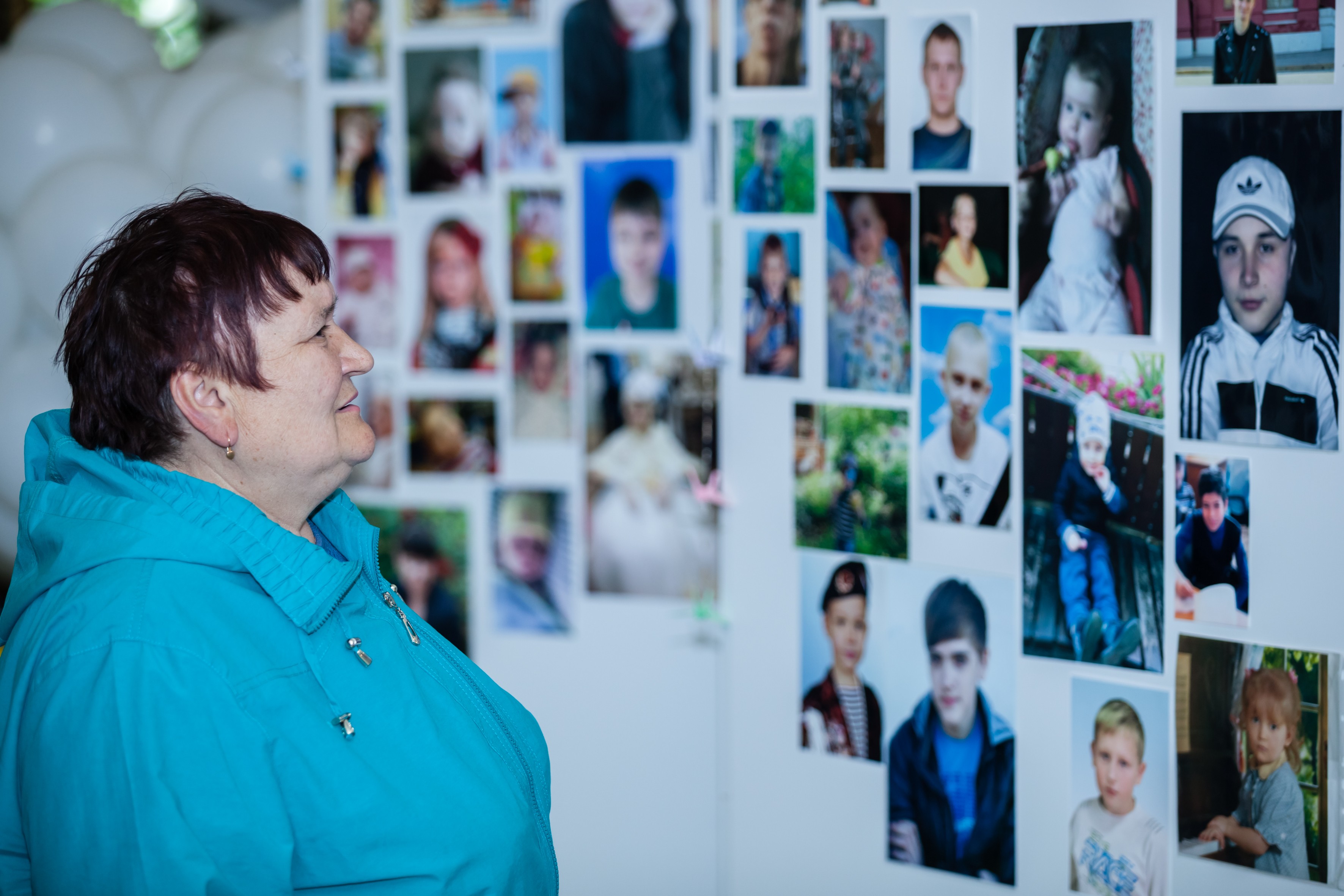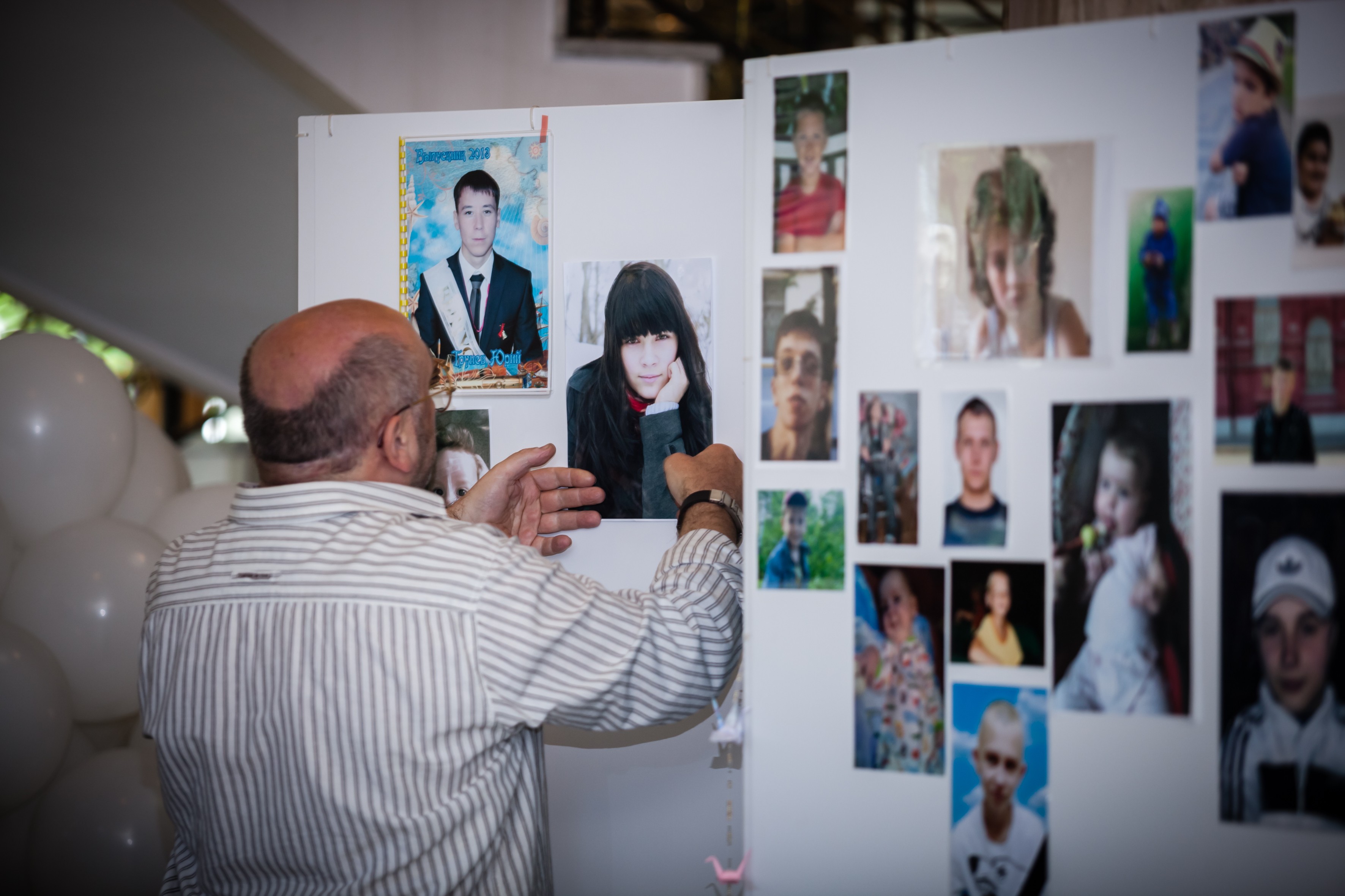 В здании театра Новая опера много людей и … очень тихо. Только дети бегают, шумят и смеются, и на этот смех отзываются улыбками их ушедшие братья и сестры с фотографий на стендах. Эти фотографии бережно приклеивают молчаливые родители — беременная плачущая девушка, молодая семья с грудным ребенком, пожилая пара…