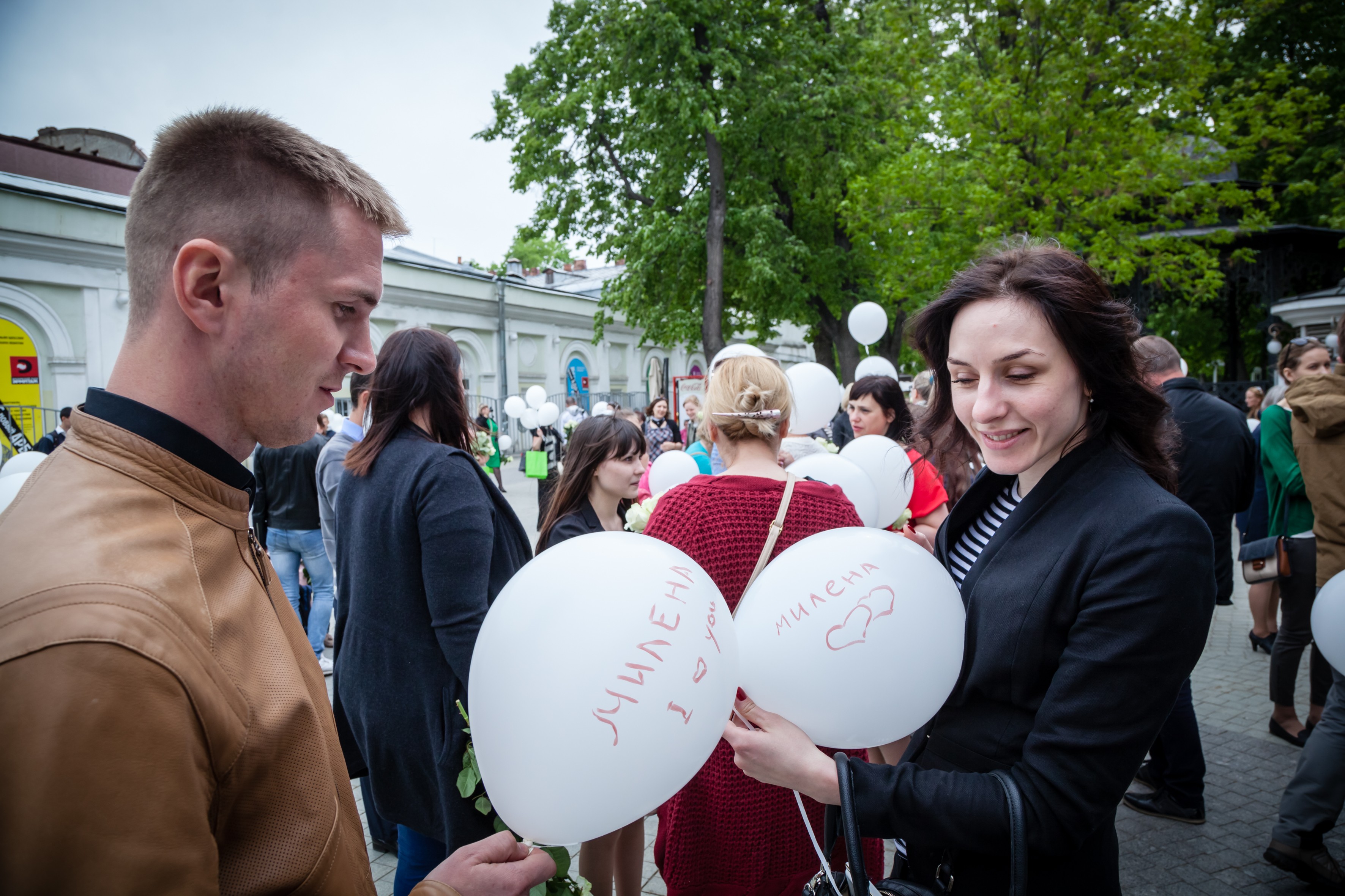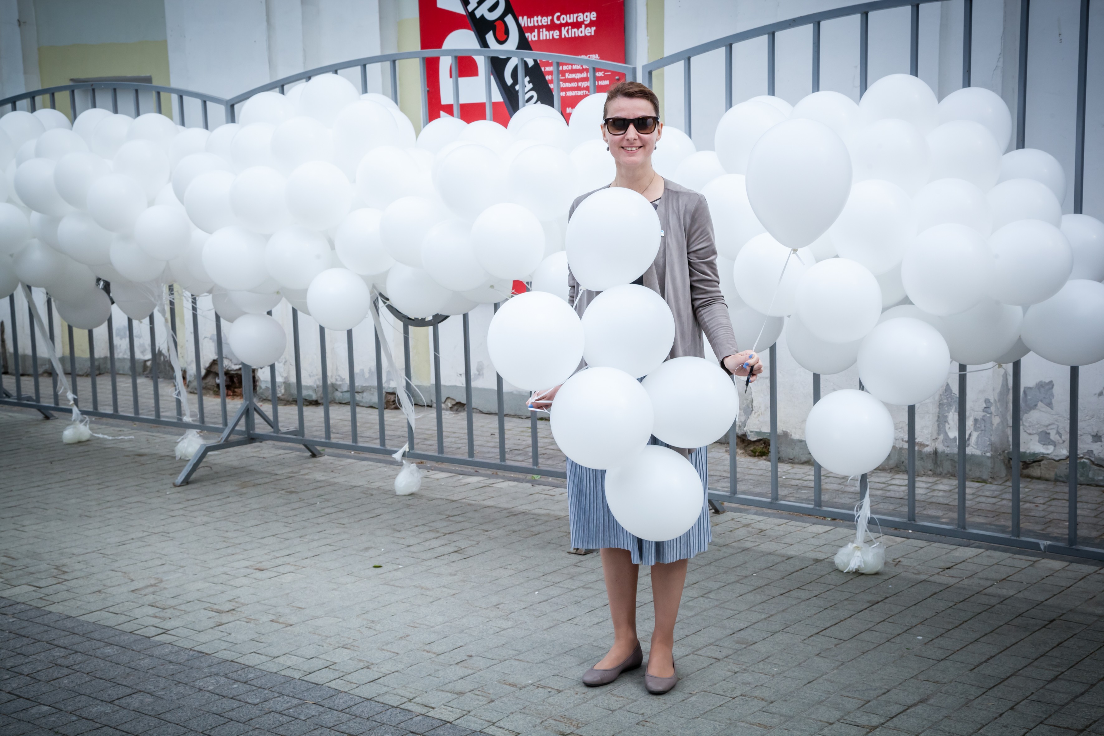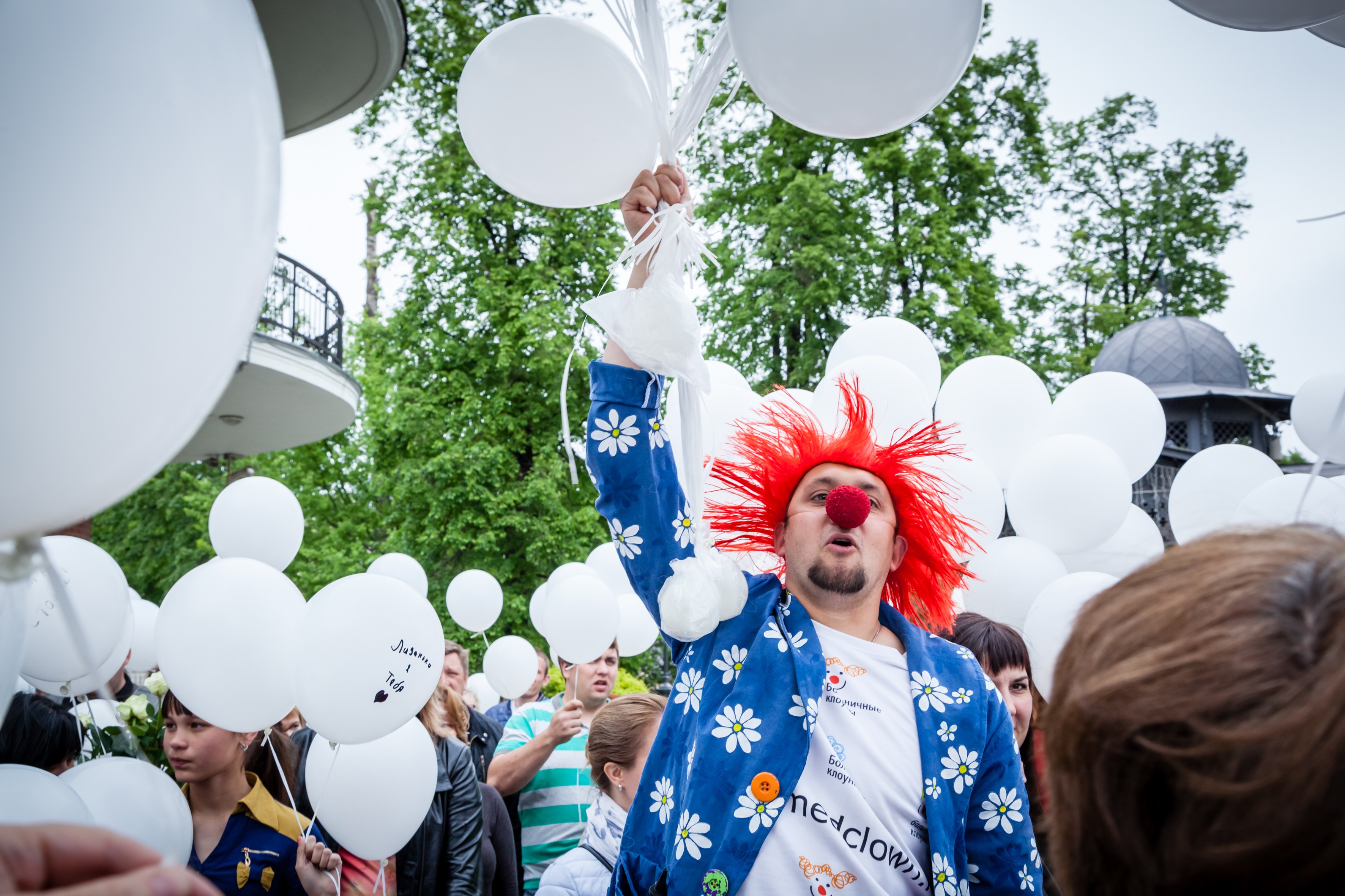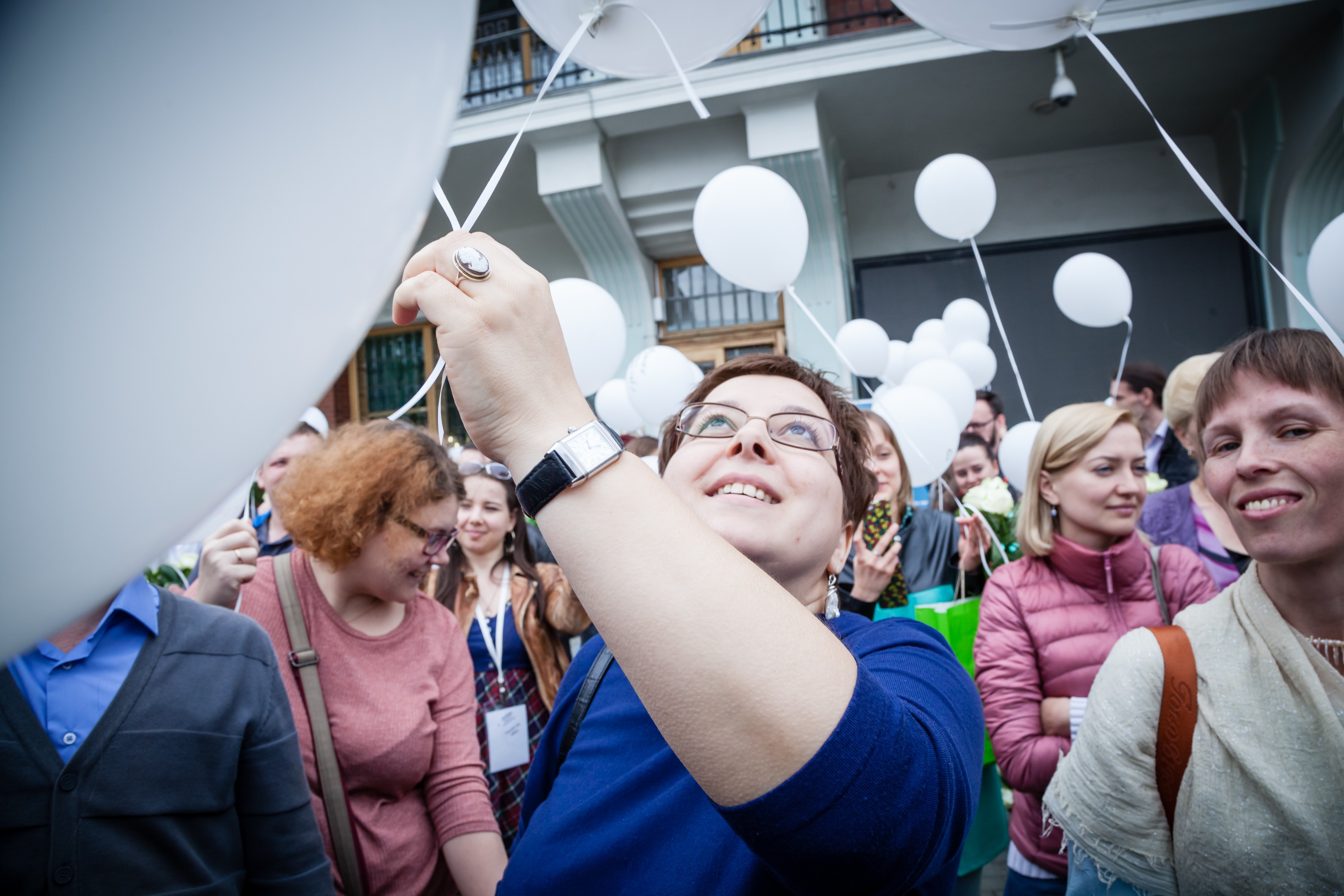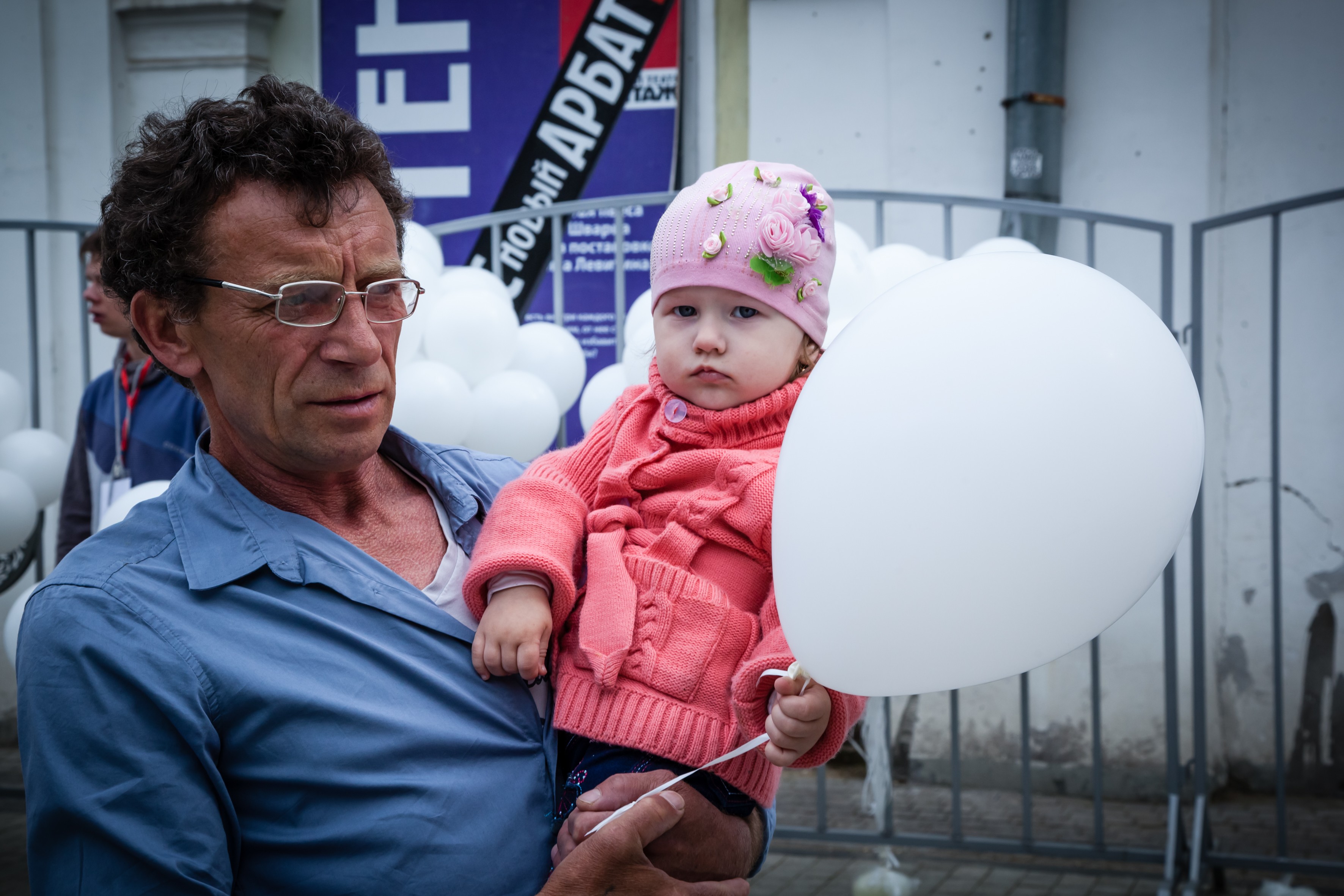 И вот на улице родителям снова раздали сотни белых воздушных шаров. Дул сильный ветер, шары рвались в небо. И, не дожидаясь общей команды, некоторые родители были вынуждены выпустить невесомую веревку с шариком из рук, чтобы дать ему улететь.
