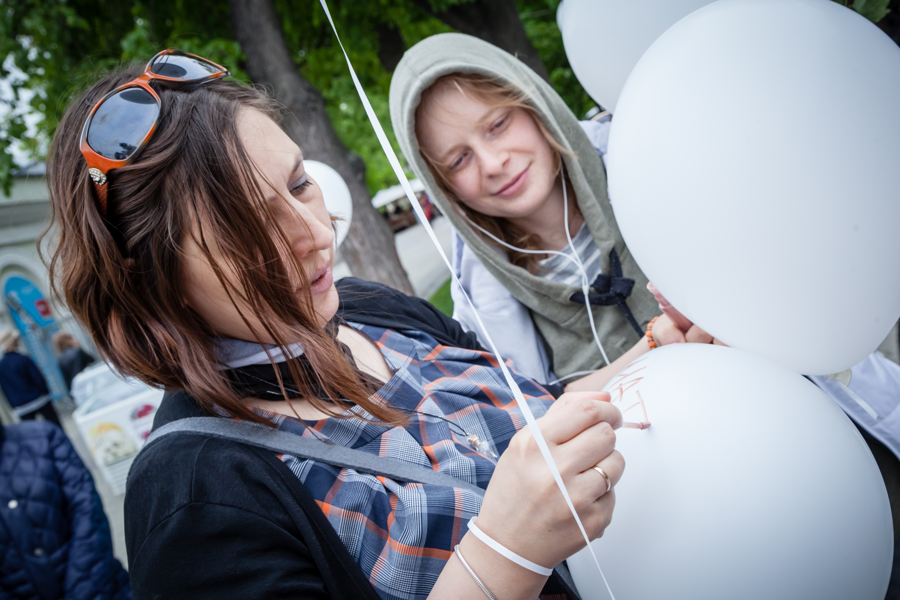 А Елена — мама Леши, ушедшего в прошлом году накануне своего 17-летия, рассказала, что написала на шарике имя сына, перед тем как выпустить шар в небо:
