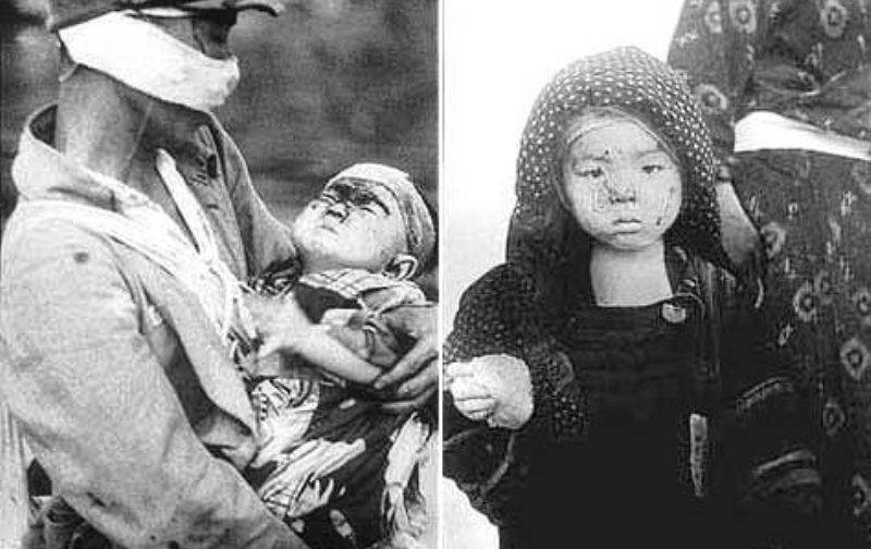 Более 300 тысяч напалмовых бомб вызвали пожары на огромной площади. Беззащитный город вспыхнул, как гигантский костер. Вскоре пламя над Токио поднималось на несколько сотен метров. Одновременное горение сотен тысяч деревянных строений привело к возникновению огненного шторма. Потоки раскаленного воздуха, температура которого над центром горевшего города превышала 1 000оС, стремительно поднимались ввысь, вызывая с окраин настолько интенсивный приток свежего воздуха, что его скорость достигала ураганной. Сила ветра была такова, что людей сбивало с ног и бросало в пылающее пекло.