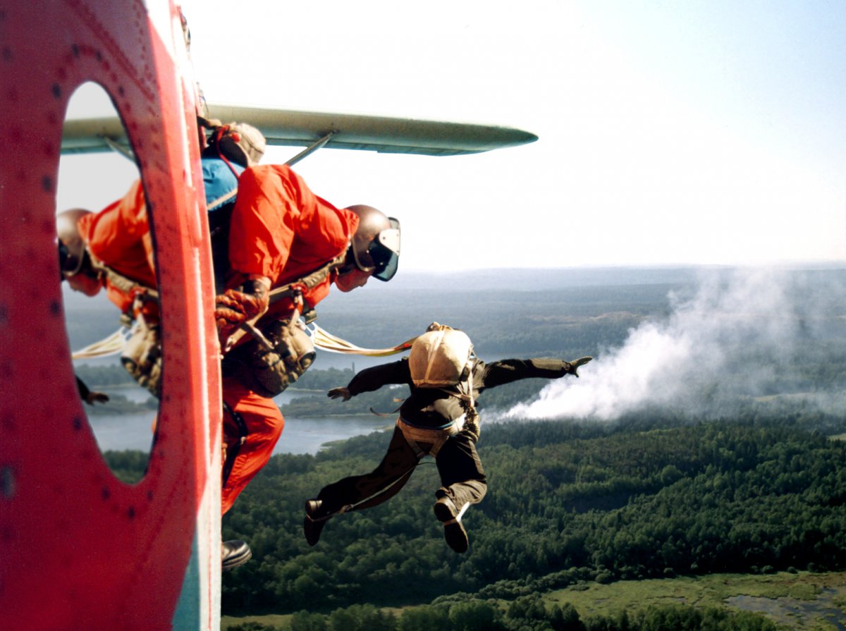 Об этой службе вообще мало кто знает, потому что она всегда работает в отдалении от людских глаз. Это уникальная служба, которая впервые появилась именно в России. Вообще службу парашютистов-пожарных придумал русский ученый Георгий Александрович Макеев более 85 лет тому назад! Он первый в мире разработал систему, при которой лесные пожары могут тушить специально обученные парашютисты, которые высаживаются на неподготовленные площадки. Оборудование для тушения пожаров спускается на грузовом парашюте. Строится лагерь, и затем пожарные долго делают так называемую минерализованную полосу — они копают землю до тех пор, пока не дойдут до минерализованного слоя. Собственно, минерализованная полоса — это траншея, за которой пожарные зажигают лес (то есть создают искусственный пожар). Таким образом встречаются два пожара. Получается, что природный пожар лишается подпитки, топлива. Два пожара как бы поедают другу друга. 90% лесных пожаров тушатся именно так. Но это почти никогда не показывают по телевизору.