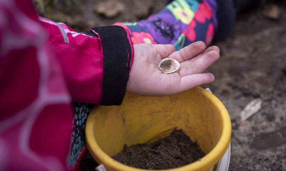 Вика и Лиза варят суп из песка