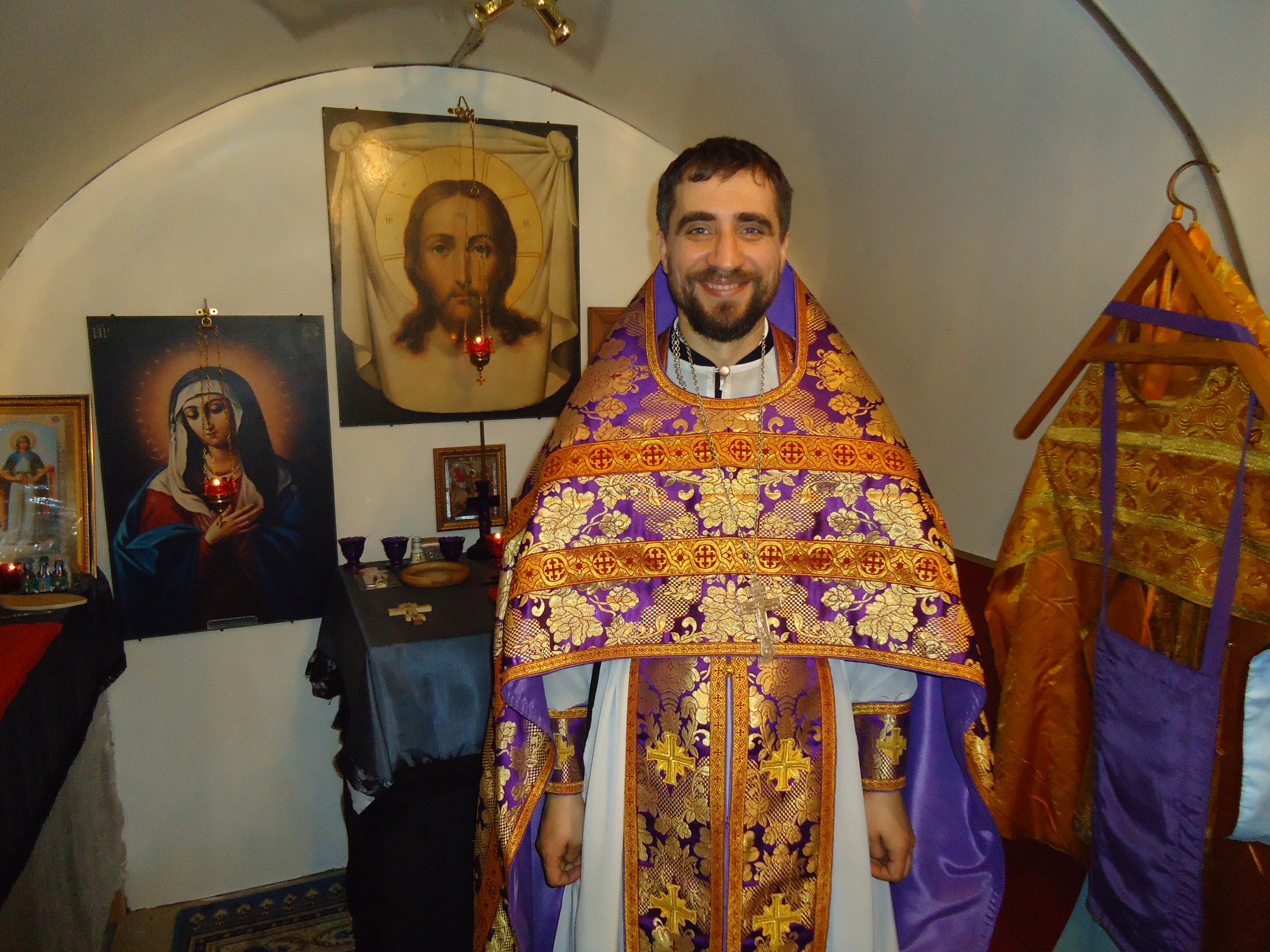 Настоятелем владыка назначил священника Евгения Сергеевского, одного из клириков нашего Казанского храма. Отец Евгений очень радовался, когда на вечерней службе в пятницу вагончик был заполнен — к помазанию подошли сорок пять человек.