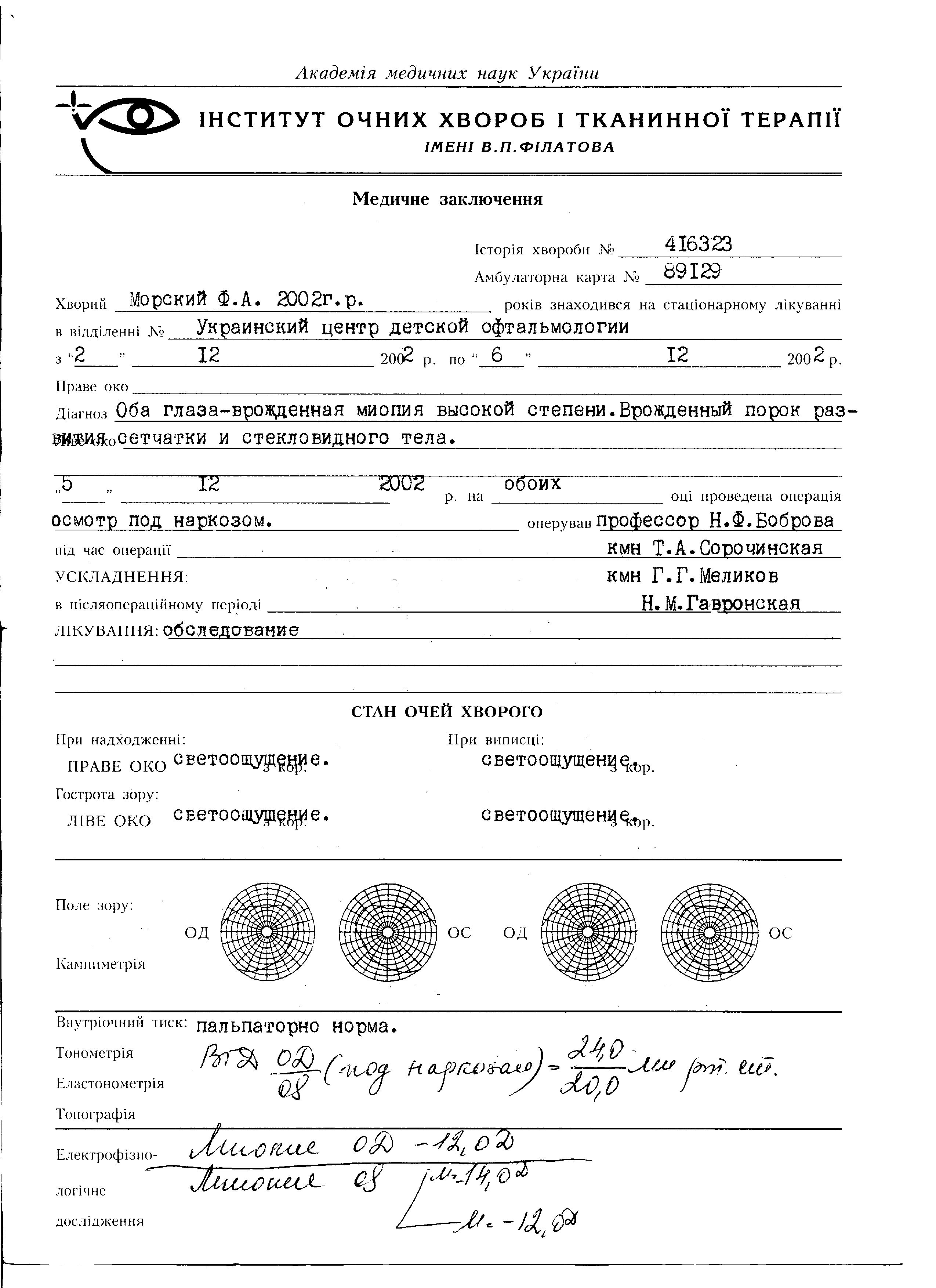 Однако диагноз одесских специалистов был неутешительным: врожденный порок развития сетчатки стекловидного тела. Попросту говоря, ребенок не может видеть из-за складок на сетчатке глаза. В институте имени В.П. Филатова врачи прямо сказали, что на медицину рассчитывать в этом случае не приходится. Одна надежда – на Бога.