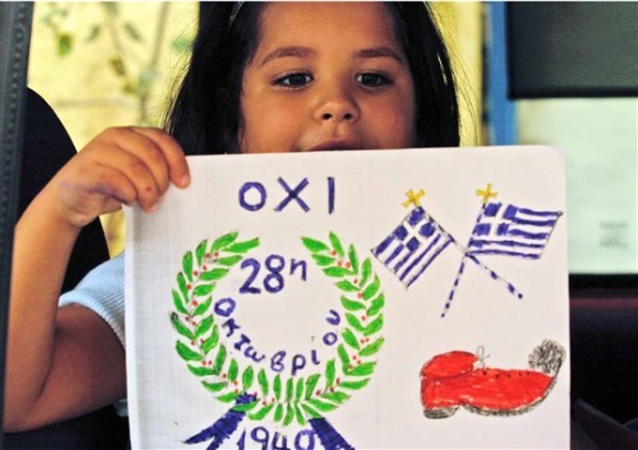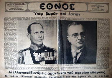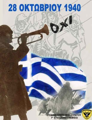 1940 год. В ночь на 28 октября 1940 года посол Италии в Греции передал премьер-министру Иоаннису Метаксасе телеграмму Муссолини, в которой Греции предлагалось сдаться полностью, без каких-либо условий Италии. Греческий премьер-министр ответил только: «Нет!» (по-гречески «охи»). Утром вооружённые силы Италии начали оккупацию греческих территорий. Греция вступила во Вторую мировую войну. День Охи (греч. Επέτειος του «’Οχι» — годовщина «Нет») — государственный праздник в Греции и на Кипре.