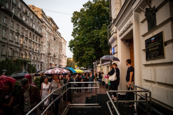 18.30 Организовали акцию женщины: главный редактор журнала «Отечественные записки» Татьяна Малкина, литературный критик Анна Наринская, актриса Яна Троянова, телеведущая Татьяна Лазарева, издатель Варвара Горностаева, журналисты Мария Шубина, Анна Качуровская и Ольга Гринкруг.