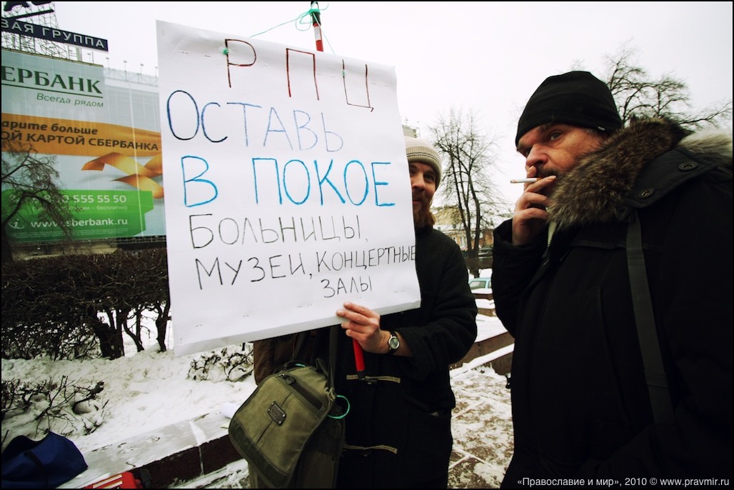 19 декабря в Москве на Пушкинской площади в Москве прошел митинг против возвращения Церкви исторически принадлежавшего ей имущества. Закон «О передаче религиозным организациям имущества религиозного назначения, находящегося в государственной или муниципальной собственности»был подписан Президентом Д. Медведевым 30 ноября 2010 г.