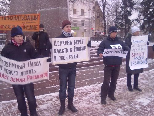Митинг прошел в рамках всероссийской акции протеста против возвращения Церкви храмов и объектов религиозного назначения. Акции прошли в Москве, Калининграде, Челябинске, Рязани, Архангельске, Воронеже, но все они были крайне немногочисленными — выразить свое согласие с протестующими пришли лишь несколько десятков человек, немалую часть собравшихся составляли журналисты, агитаторы из политических партий (преимущественно КПРФ) и участники контр-митинга (с плакатами «Богу Богово»). Участники акции выступают за то, чтобы Церкви не передавались более 60 объектов недвижимости, среди которых Рязанский кремль, Соловецкий музей-заповедник, Калининградские кирхи.