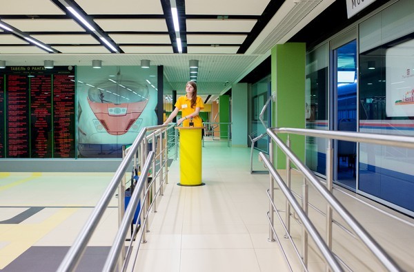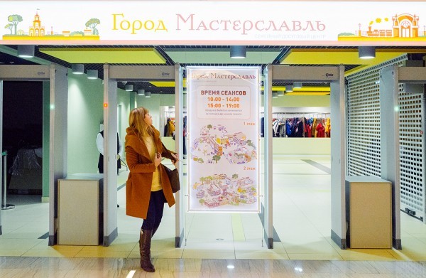 У входа, сразу за раздевалкой, посетителей ждет перрон, с которого отправляется «поезд» Москва-Сити – Мастерславль. Рядом с перроном – огромная доска с «Табелью о рангах», согласно которой в городе осуществляется движение по карьерной лестнице. Кондуктор проверяет ваши билеты и… «Добро пожаловать в Мастерславль». В вагоне, во время «дороги», детям вкратце рассказывают о законах и правилах поведения, действующих в городе.