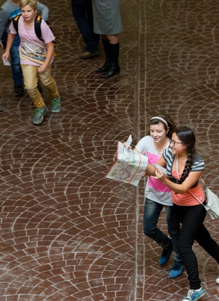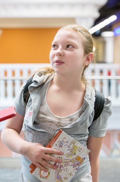 На втором этаже встречаем девочку. Она идет одна, внимательно рассматривает карту.