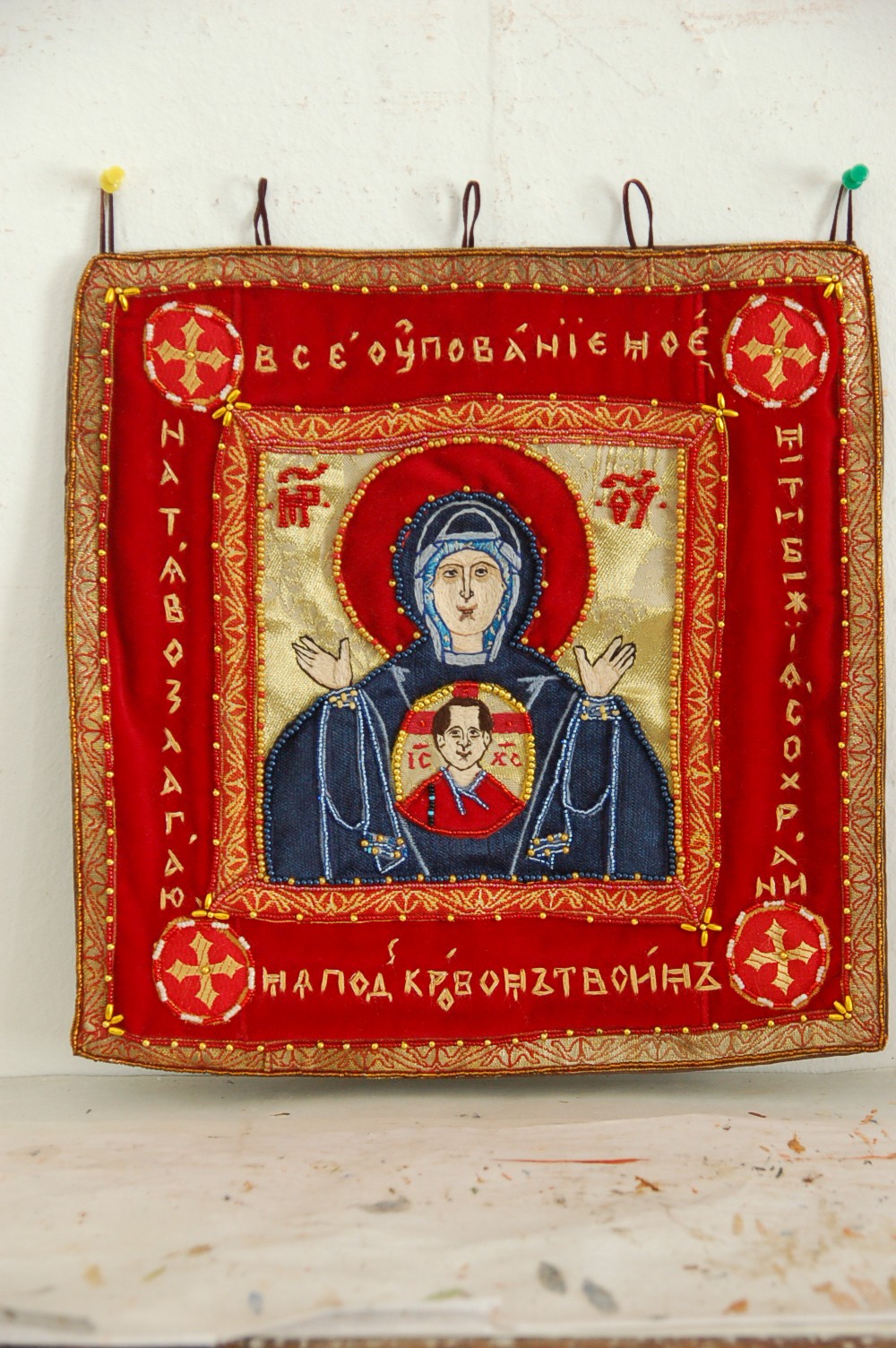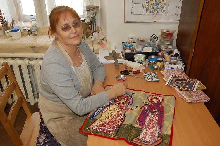 — Не преувеличивай! Как началась моя вышивка? Мы жили тогда во Пскове, и у нас в церкви были только иконы. Ни хоругвей, ни плащаницы. Покупать дорогие и безвкусные вещи, которые предлагал рынок церковных товаров, не хотелось, да и денег столько не было. Нам всегда везло на бедные приходы. Сначала хотела заказать подруге, а потом, узнав цену, решила попробовать сама.