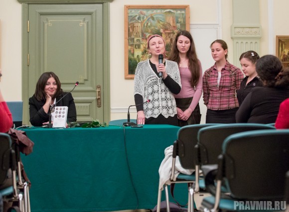 В результате, из девяти матушек в зале находилась только одна — Ольга Юревич. «И то под конвоем батюшки», — заметила Ксения.