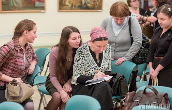 Матушка Ольга также подписывает книги. Сейчас – автограф на экземпляре Ирины Языковой. Рядом с Ольгой Юревич – ее дочери