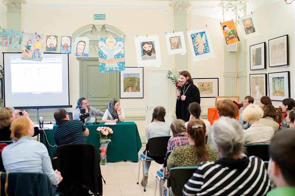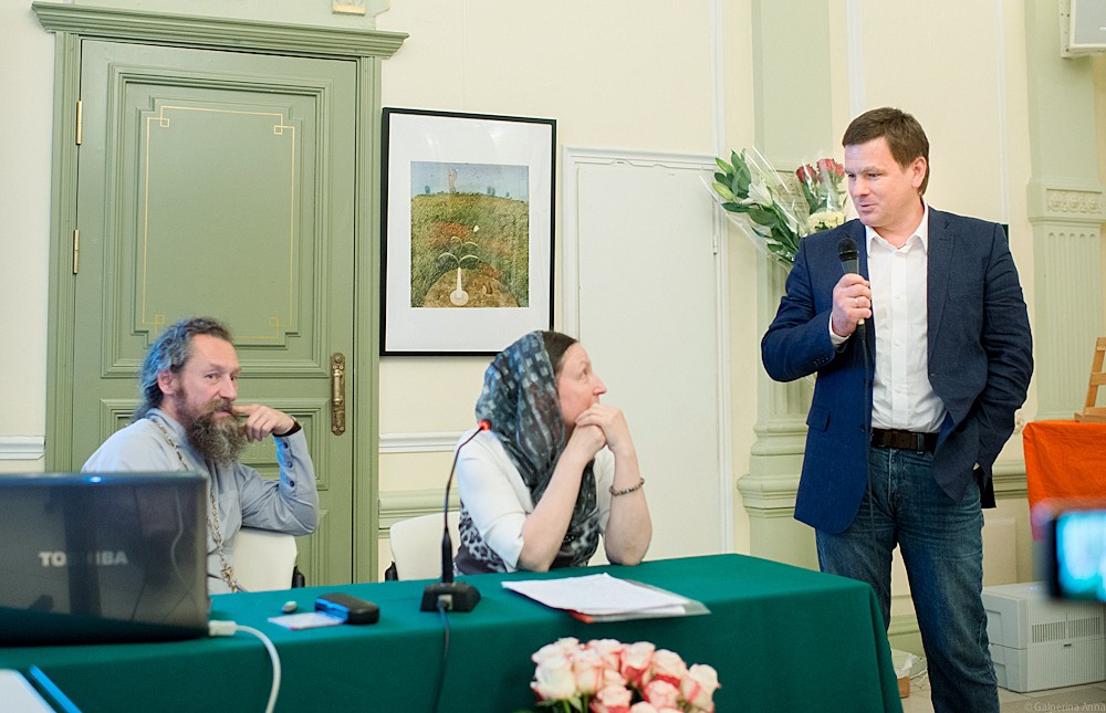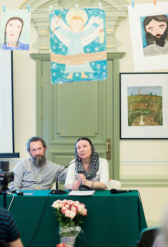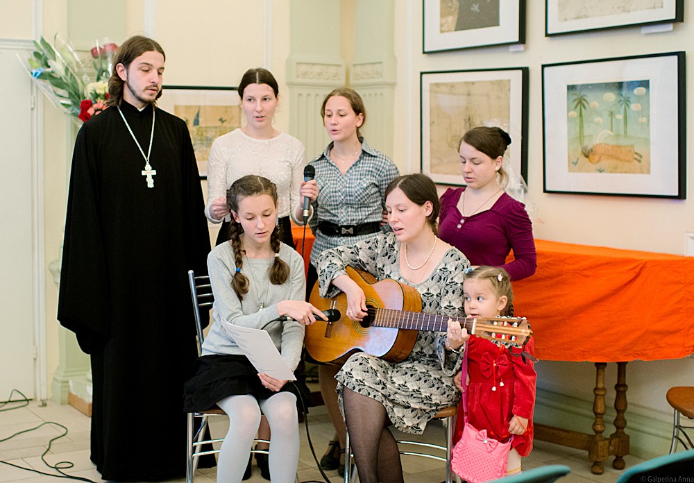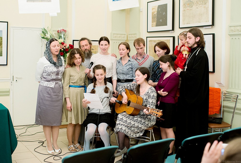 «Готовя этот вечер, мы с матушкой решили говорить не столько о самой книге, хотя не говорить о ней невозможно, поскольку ее „составители“ — наши дети, наша семья. Мы хотели показать жизнь нашей семьи, поделиться радостью, теплотой, которая, мы дерзаем думать, есть в нашем доме. Мы хотим, чтобы вам стало тепло и радостно», — обратился к гостям отец Андрей в самом начале встречи.