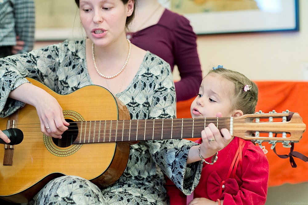 А вот видео домашних концертов: сын старательно играет на гитаре, две сестренки исполняют музыкальный отрывок в четыре руки (фоном слышится, как заявляют о чем-то своем самые маленькие, в концерте, по понятным соображениям, не участвующие) а вот — две другие — танцуют в сарафанах русский народный танец.