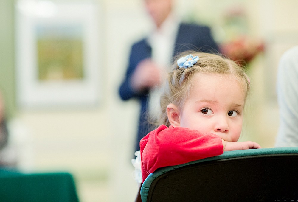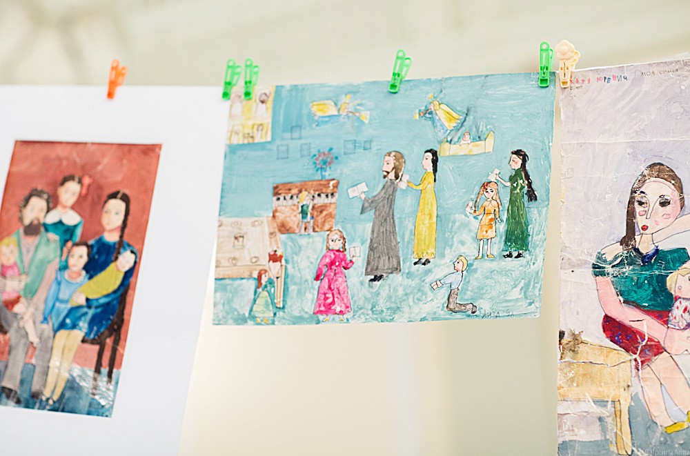 Яркие детские рисунки, развешенные на цветных прищепках прямо перед столом, за которым обычно сидят участники встреч и презентаций…