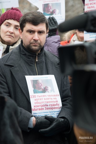 На этот пикет пришли определенно не по разнарядке. «Мы – матери, мы будем стоять с детьми, и нас не прогонят!» – обсуждали рядом со мной решительные женщины, держащие в руках плакаты. Молодой отец Александр Воронин к Матвею отношения не имеет, но мимо пройти не смог. «Об истории Матвея я узнал случайно, после того, как мой друг на Facebook поделился одной из записей Ольги Синяевой. Я узнал всю ситуацию, и она тронула меня до глубины души. Если честно, был просто в шоке, и очень болело сердце в переживаниях за малыша. Я сам стал отцом в начале этого года и, видимо, теперь по-другому стал относиться к таким вещам. Поэтому теперь хочется помочь хоть чем-нибудь, любой мелочью. Есть чувство внутри, что нельзя это оставлять просто так. Очень хочется, чтобы поскорее вопрос с усыновлением решился положительно тем или иным образом. Малыш прошел через немыслимо сильные страдания, чтобы до сих пор оставаться заложником этих обстоятельств. Ведь столько еще предстоит сделать для того, чтобы поставить его на ноги», – рассказал он.