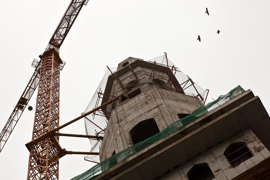 «Уже который месяц стройка практически не движется: строительные краны в одном и том же положении, людей на здании не видно, на площадке тишь да гладь. Сегодня я нарочно остановился рядом, взял фотоаппарат и обошел стройплощадку — ни людей, ни техники и, кажется, на стрелах кранов птицы уже вьют гнезда. Поговорил с одним из охранников — дескать, где строители, почему не строят такую необходимую всем московским мусульманам мечеть? Охранник понимающе, как мне показалось, улыбнулся и сказал, что где-то там, внутри есть два человека и они там что-то делают. Я позвонил по указанному на щите телефону в компанию, которая занимается строительством, и там мне ответили, что вопрос, почему не идет стройка, нужно задавать заказчику, а не им. Я-то думаю, что у заказчика просто кончились деньги — так в Москве бывает сплошь и рядом«, — пишет блогер Рустем Адагамов, побывавший на месте строительства.