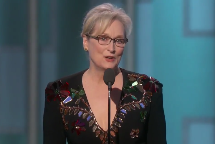 Мэрил Стрип получила в этом году «Золотой глобус» за заслуги в области кино. В ответной речи она коснулась выступления Дональд Трамп, когда тот пародировал репортера New York Times с инвалидностью. Она назвала выступление Трампа «актерской работой», которая «проникла в самое сердце».