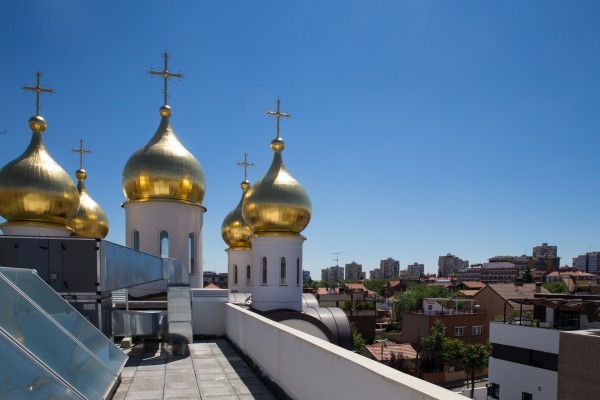 Землю под храм в Мадриде выделили в 2010 году – и вот – церковь с золотыми куполами. Каждый сантиметр здесь используется для проповеди – начиная от росписей с испанскими надписями на дверях храма до воскресной школы и огромного центра изучения русского языка – Casa Rusia – Русский дом в сердце Мадрида.