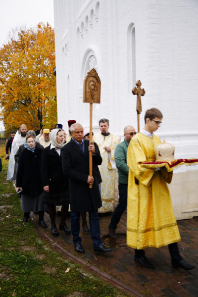 История завершилась 6 октября, когда епископ Александровский и Юрьев-Польский Иннокентий совершил великое освящение храма. Мы долго готовились — покупка утвари, ремонт и побелка всего храма снаружи — все в лесах, пыли и краске… Месяц работ. Две ночи до освящения мы практически не спали. Нужно было все вычистить, вымыть, накрыть столы, а в три часа – в ночь перед освящением — мы еще сели порепетировать и посмотреть ноты.