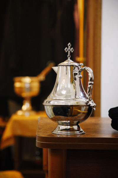 Утро началось сразу, как холодный душ. Приехали иподиаконы и начали раскладывать ковры, облачения, подготавливать необходимые для освящения предметы. Все волнуются, бегают. Ко мне подошел иподиакон: не плавится воскомастих – плитка, купленная нами накануне в магазине, плохо разогревается. Воскомастих — благовонная мастика, которая нужна при освящении престола, ею помазывают его столпы. Так Никодим и Иосиф Аримофейский помазывали мазью тело Христа.