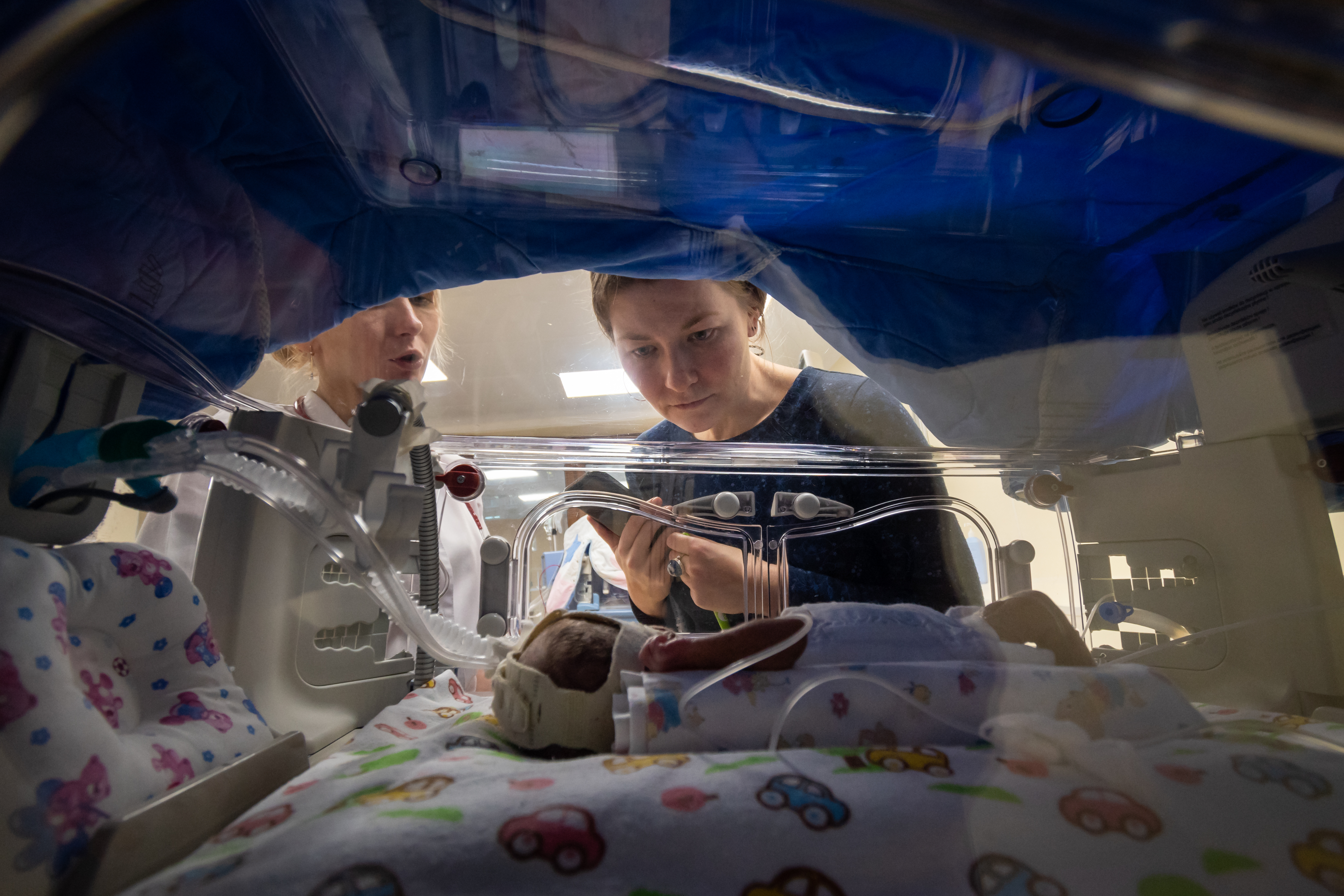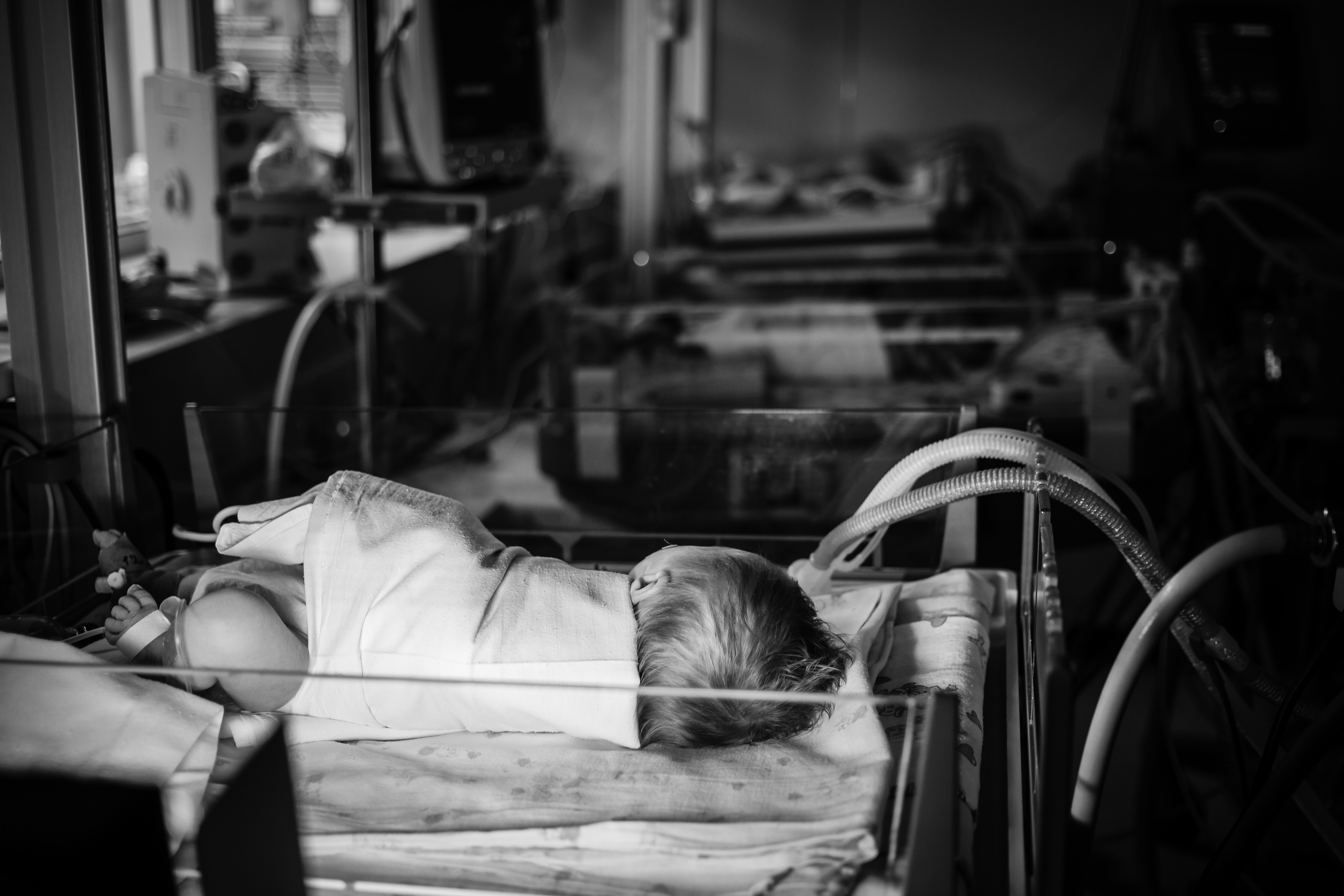 В кювезах, по 7-8 на пост, лежат маленькие «космонавты» — недоношенные детки, все еще путешествующие где-то на границе миров. У каждого кювеза прикреплены данные: дата рождения, дата поступления в реанимацию, список диагнозов (у кого-то он набирает 4-6 названий через запятую). Фамилии написаны у всех детей, имена даны еще не каждому.