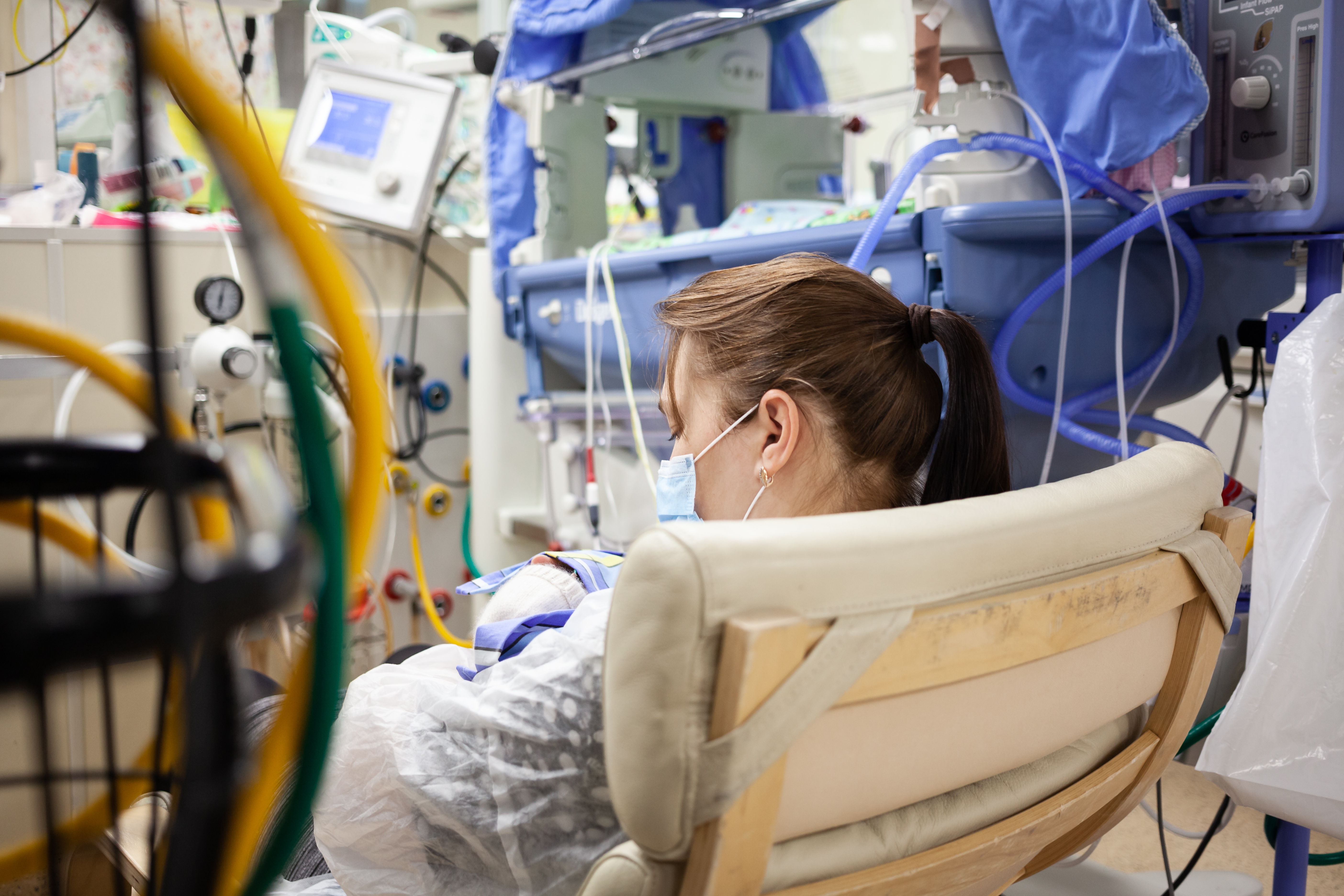 В коридоре слышен тревожный писк датчиков, идем на него. На одном из постов врач и медсестра экстубируют ребенка: убирают крохе интубационную трубку, с помощью которой и аппарата искусственной вентиляции легких малыш дышал. Вся процедура длится несколько минут. Я не понимаю значения датчиков на мониторах, но по резкому писку и морганию красным цветом ориентируюсь: скорее всего, что-то идет не так.