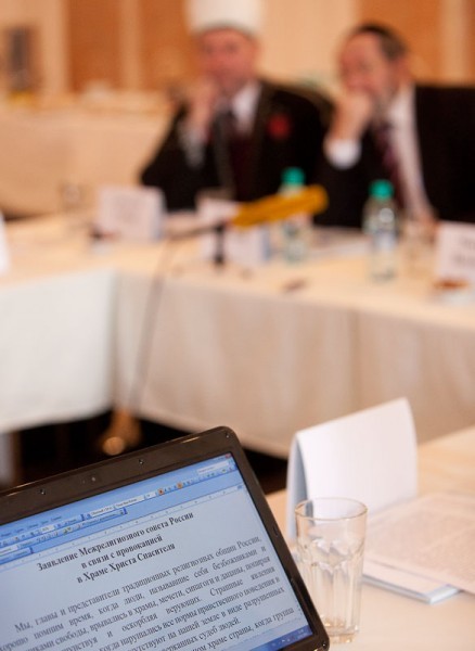 На заседании также обсудили скандальное выступление панк-феминисток в храме Христа Спасителя. Участники заседания единогласно признали, что выступление является провокацией, ставящей целью разжечь рознь в обществе на религиозной почве, что и было вынесено в официальном заявлении Межрелигиозного совета по поводу обсуждаемого события.