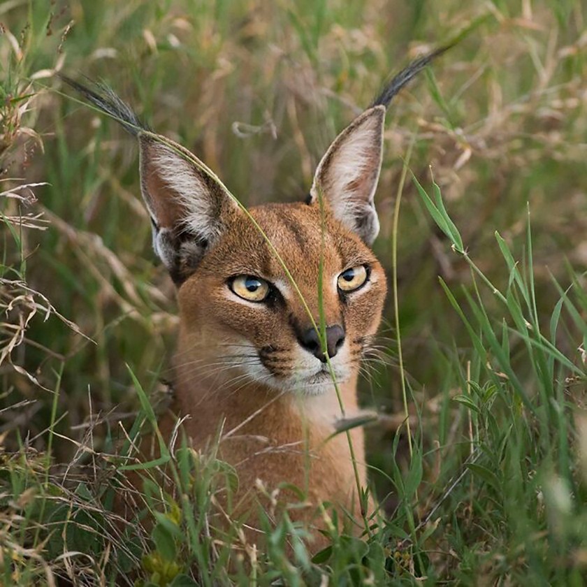 Потрясающе красивый каракал. Эта кошка отлично прыгает и часто ловит птиц в полете.