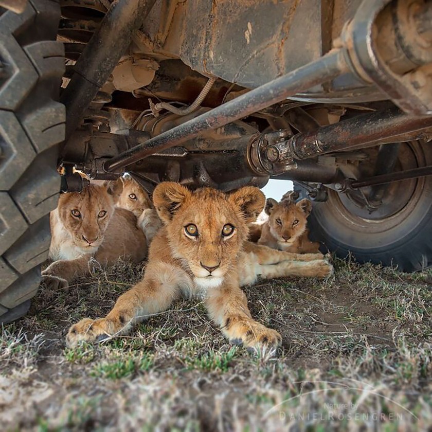 Когда я работал с исследователями львов в национальном парке Серенгети, эти львята заползли под мою машину, чтобы укрыться в тени.