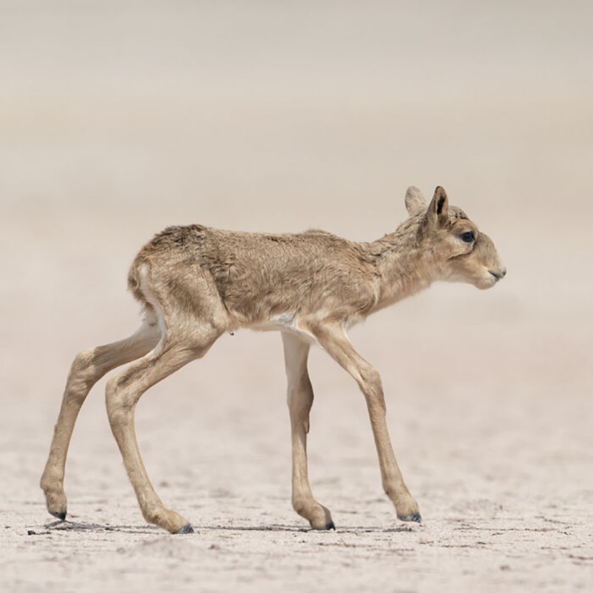 Детёныш сайги, всего один-два дня от роду.