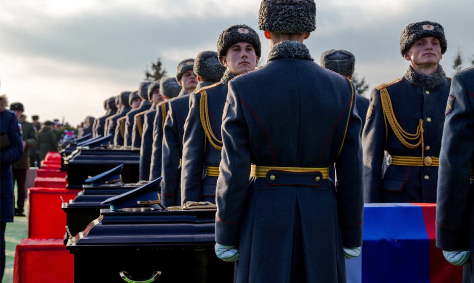 «Они ушли на взлете, ушли в расцвете сил. Они летели на выполнение боевого задания. Мы просим прощения, что не уберегли жизни наших коллег», – сказал статс-секретарь – заместитель министра обороны Николай Панков на церемонии прощания на Федеральном военном мемориальном кладбище.
