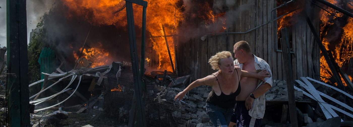 — В книге есть фотография бегущих людей, в их дом попал снаряд, все горит. Эта фотография известная, она заняла первое место на конкурсе World Press Photo. Там есть еще такие фото?