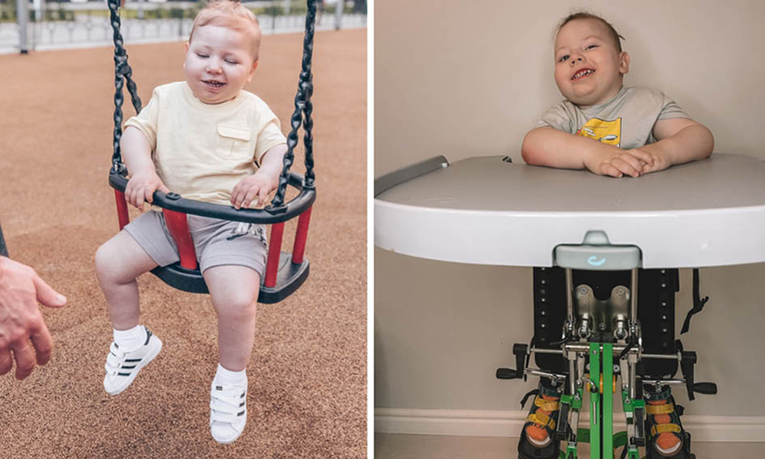 Сейчас трехлетний Мирон с минимальной поддержкой инструктора стоит на балансировочной доске. В опоре для ползания может дотянуться до игрушки. Крутит велотренажер и пытается с надетыми на ноги фиксаторами делать первые шаги.