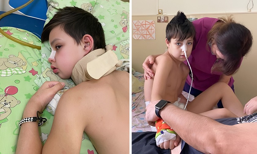 Началась борьба за жизнь. Из медикаментозной комы Миша вышел в вегетативное состояние. В таком состоянии он пробыл два месяца. У мальчика развился гиперкинетический синдром, проявляющийся в неконтролируемых движениях. Когда подобрали терапию и состояние улучшилось, произошло новое осложнение — стало нарастать нервное напряжение и мышечный тонус. «Ноги стали как палки. Спина тоже, Миша не мог сидеть, падал».